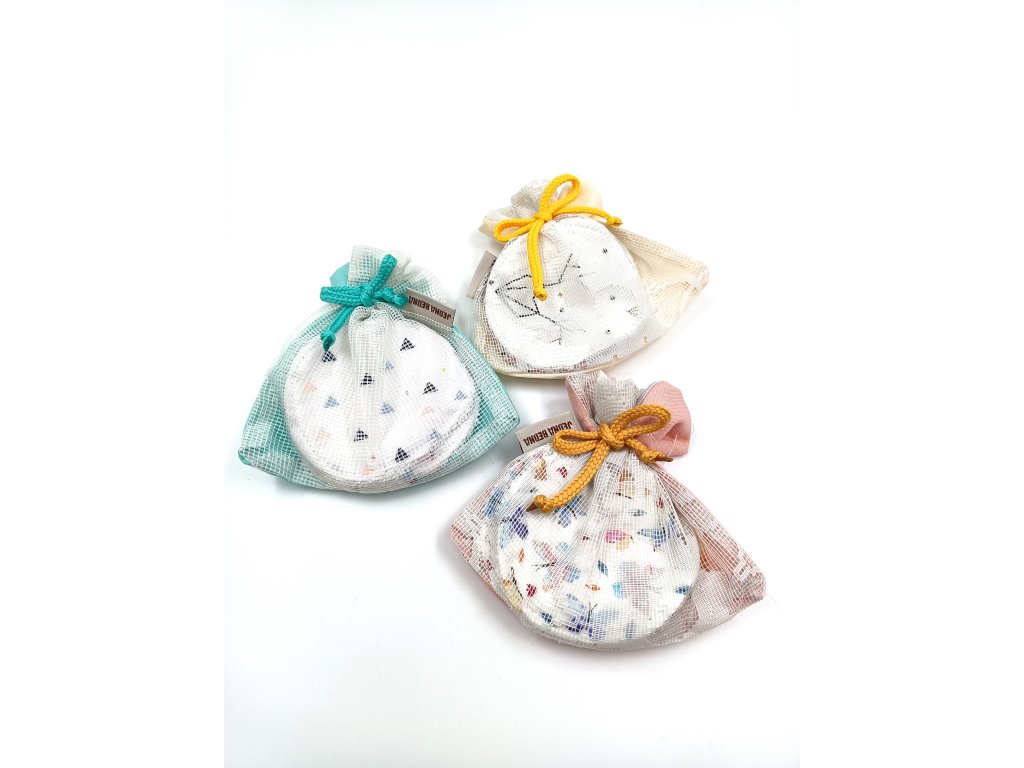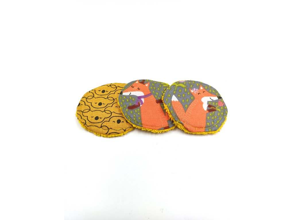 Jedna strana je z bavlněného froté, druhá z bavlny. Průměr jednoho tamponku je cca 6 cm, v sadě jsou 3 kusy.