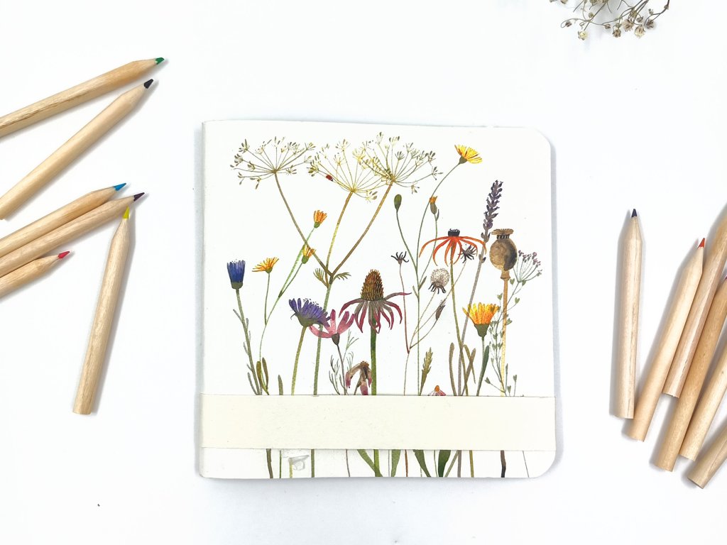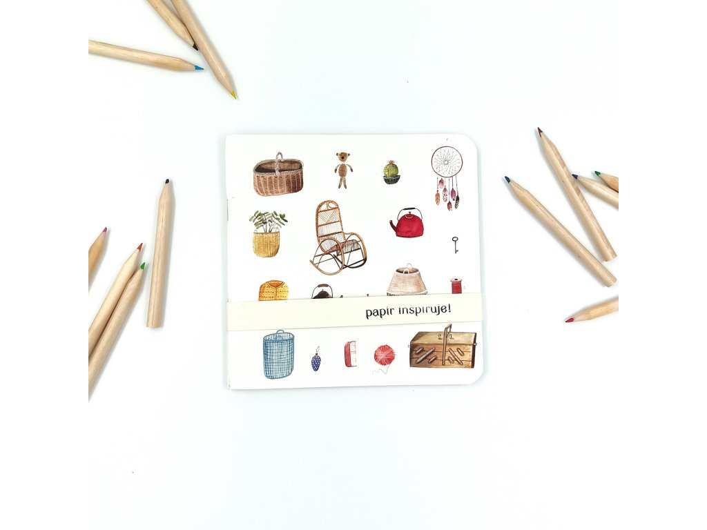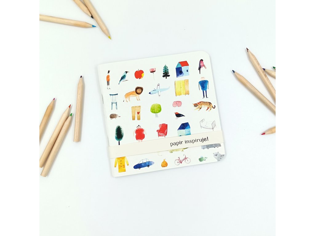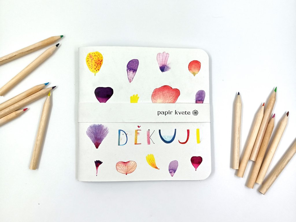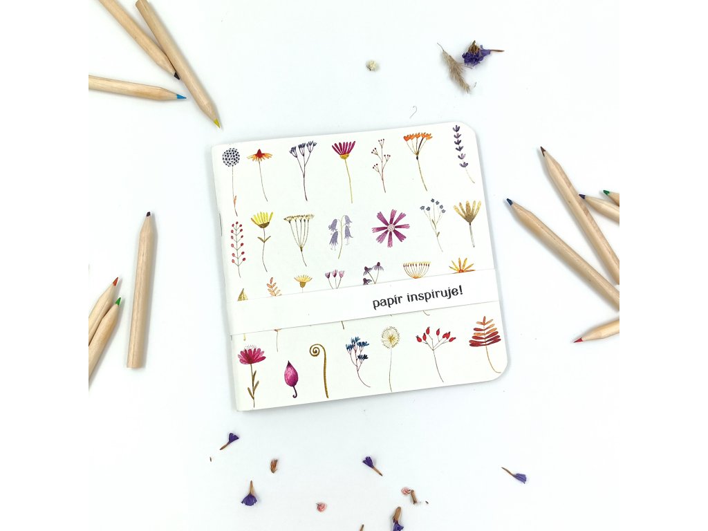 Čtvercový sešit JOU JOU má 14,5 cm x 14,5 cm.