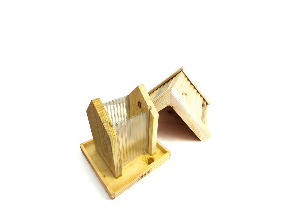 Rozměry krmítka jsou přibližně: výška 29 cm; šířka 32 cm; hloubka 27 cm
