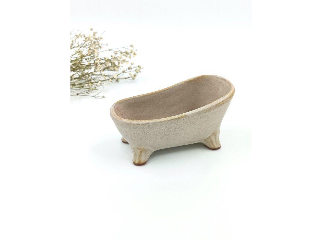 Keramická mýdlenka má rozměr 12, 5 cm x 6 cm.