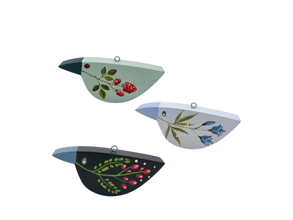 Ptáčci mají rozměr 15 cm x 6 cm. Navíc mají praktické kovové očko, díky kterému je můžete zavěsit do okna, na stěnu,... kamkoliv.