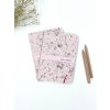 Desky sešitu z ručního papíru jsou vytvořeny z konopí, lnu, ale především z kostýmů baletu Národního divadlo (např. z kostýmu Princezny Aurory z představení Spící krasavice). Papír vypráví!